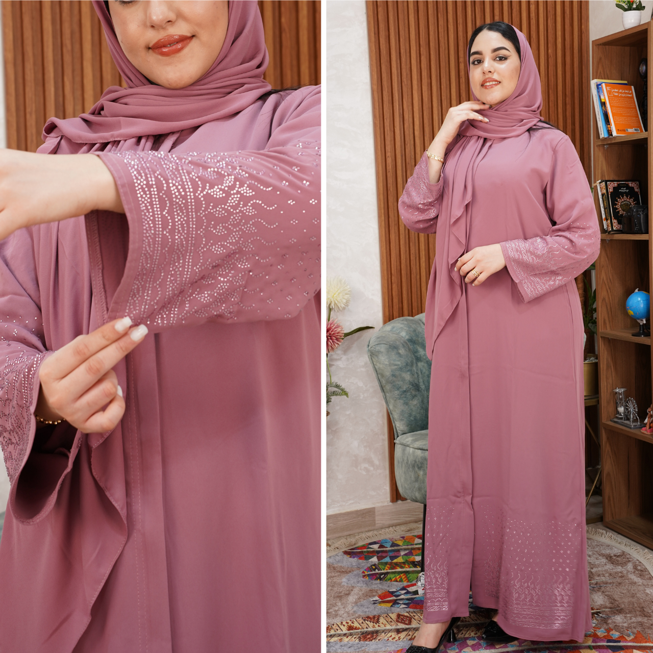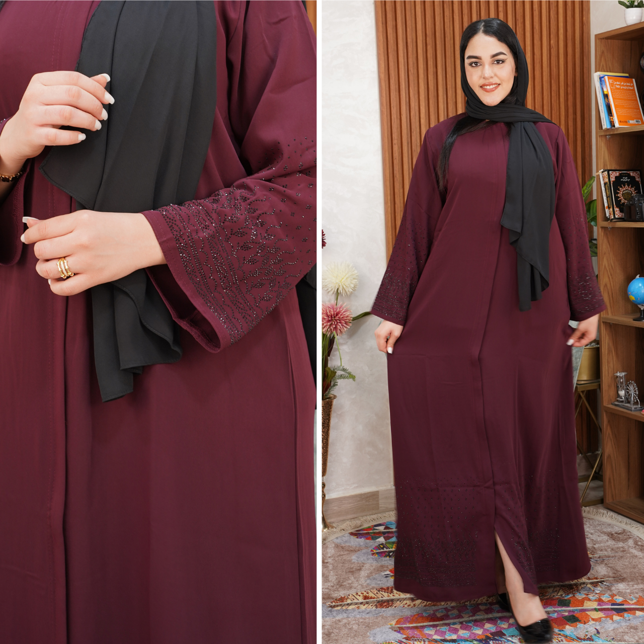 عباية راقية مزينة بلمسات ستراس فخمة تضيف لمسة أناقة وجاذبية 💎